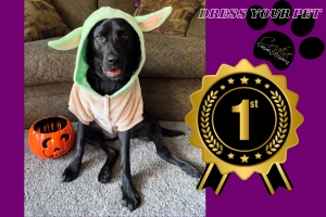The Force was strong with this one! Lara, a 4-year-old Black Lab mix, rocked her Baby Yoda costume for Halloween, and the votes proved just how much everyone loved it. Lara’s owner, Gina, says she loves dressing up, so it’s no surprise she was a natural at stealing the spotlight!